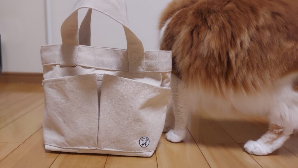 私が使っているのは、A4サイズよりひとまわり小さめのバッグ。肩にはかけられないタイプですが、車で図書館へ行くので、このくらいの大きさがちょうどよく感じています。